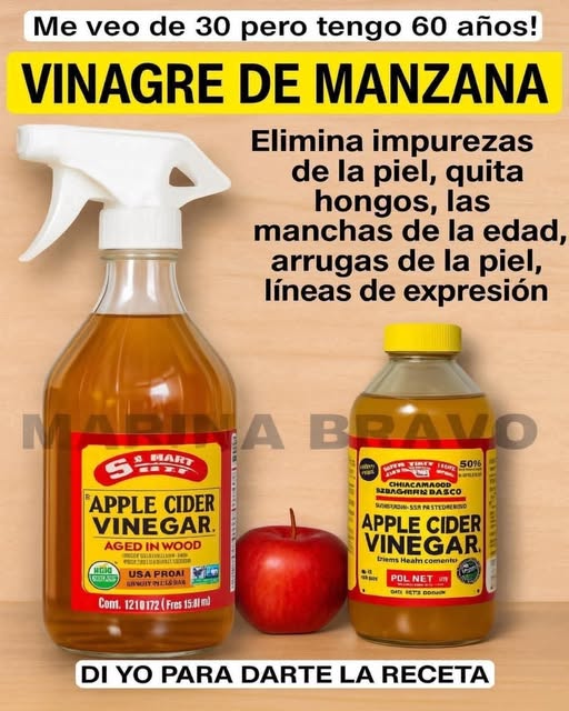 El vinagre de manzana también conocido como sidra de manzana; no solamente sirve como aderezo para ensaladas sino que también sirve como remedio medicinal. Sus beneficios se deben, sobre todo; a una bacteria que es capaz de cuidar nuestro organismo, depurarnos y mejorar nuestras indigestiones. La sidra de manzana es una gran fuente de vitaminas A y B. Además, contiene ácidos grasos esenciales. De igual forma, es rico en minerales, como el fósforo, taninos; calcio potasio, magnesio, sodio, flúor, azufre; zinc, hierro, silicio, boro, etc.
