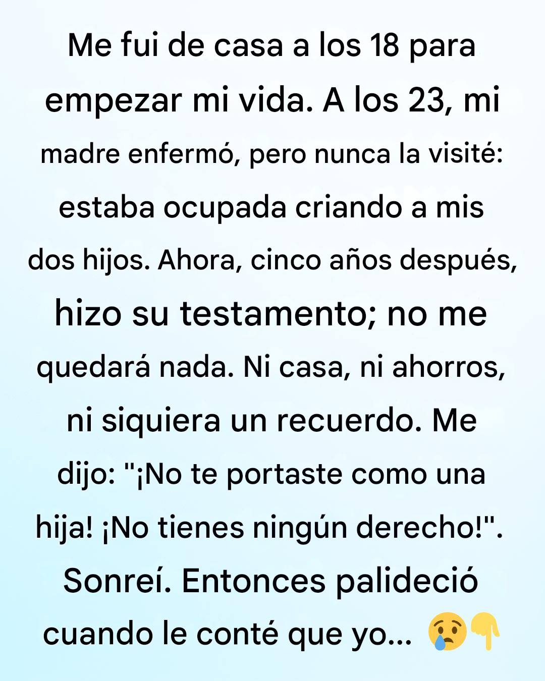 Aun así, no sé si puedo perdonarla. Al excluirme de su legado, demostró lo rápido que me juzgó sin darme la oportunidad de explicarme.